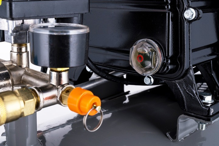 ✅ Компресор оснащений двома читаними манометрами. Манометри розташовані в такому положенні, яке полегшує зчитування параметрів.