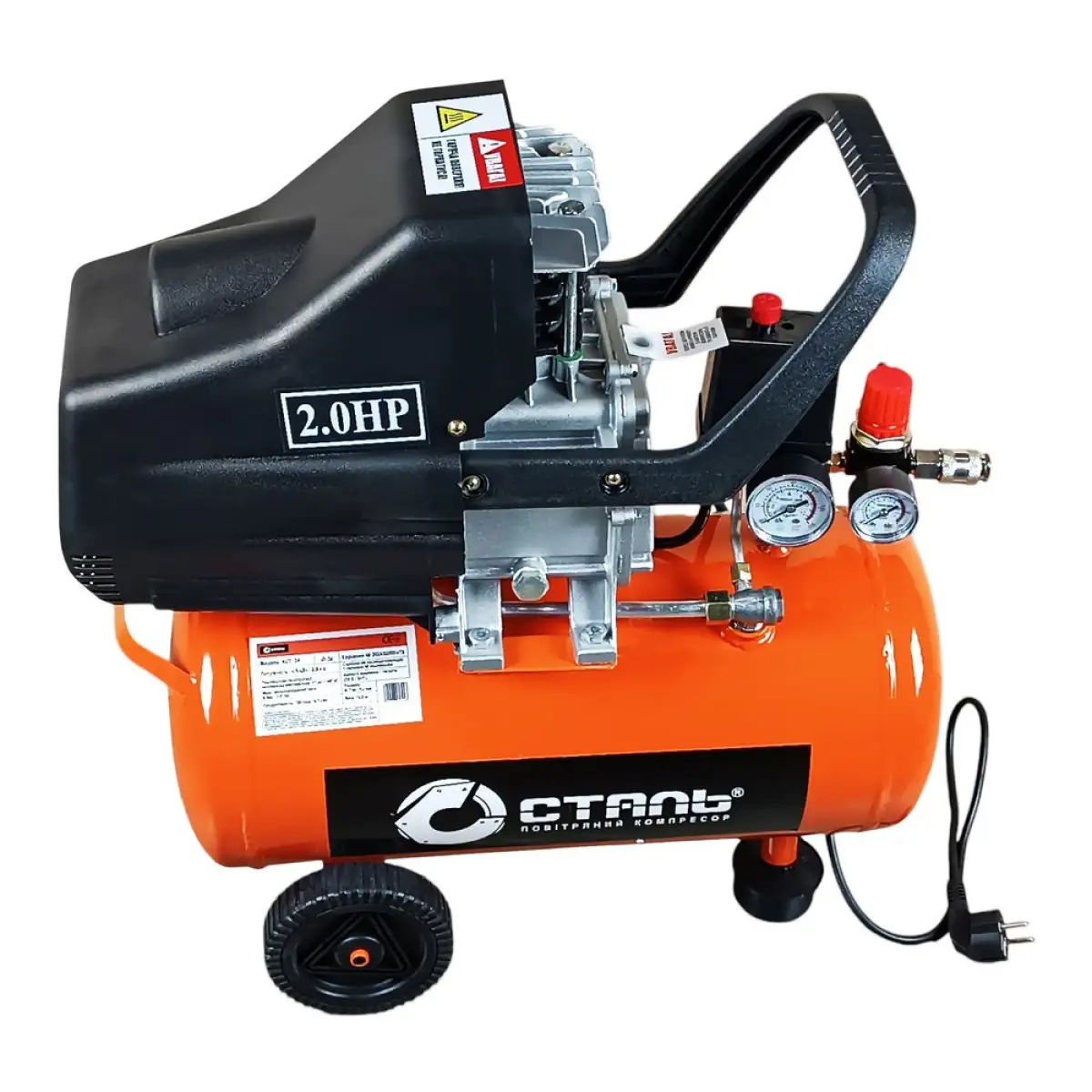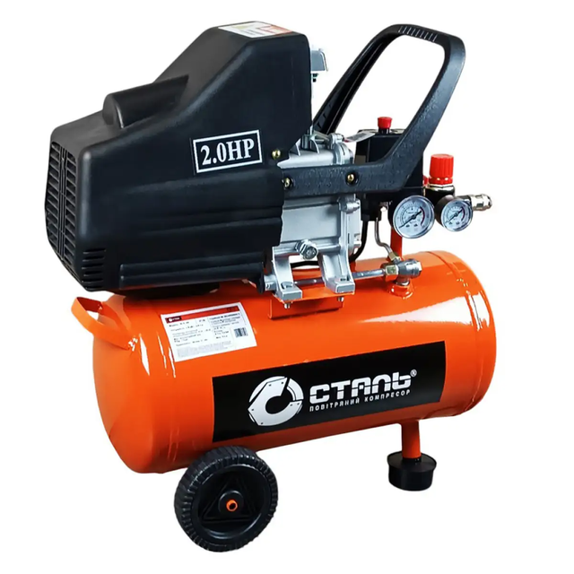 Компресор невеликий масляний компресор Сталь КСТ-24, стане відмінним придбанням для роботи в невеликих ремонтних майстерень, станціях СТО та інших виробництвах, де потрібна ефективне нагнітання повітря.